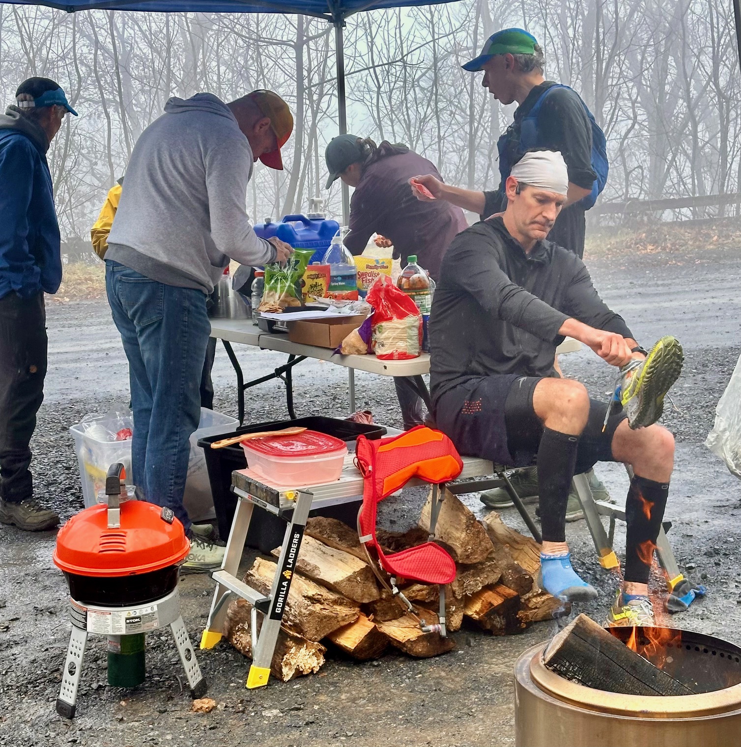 Our trail family did not disappoint, treating them to a gourmet rolling feast and a finish line bonfire with hot chili, and freshly baked pizza and cookies. Chocolate-covered bacon? Check. Pierogies? Check. Grilled cheese sandwiches with 6 types of cheese inside? Check check check.