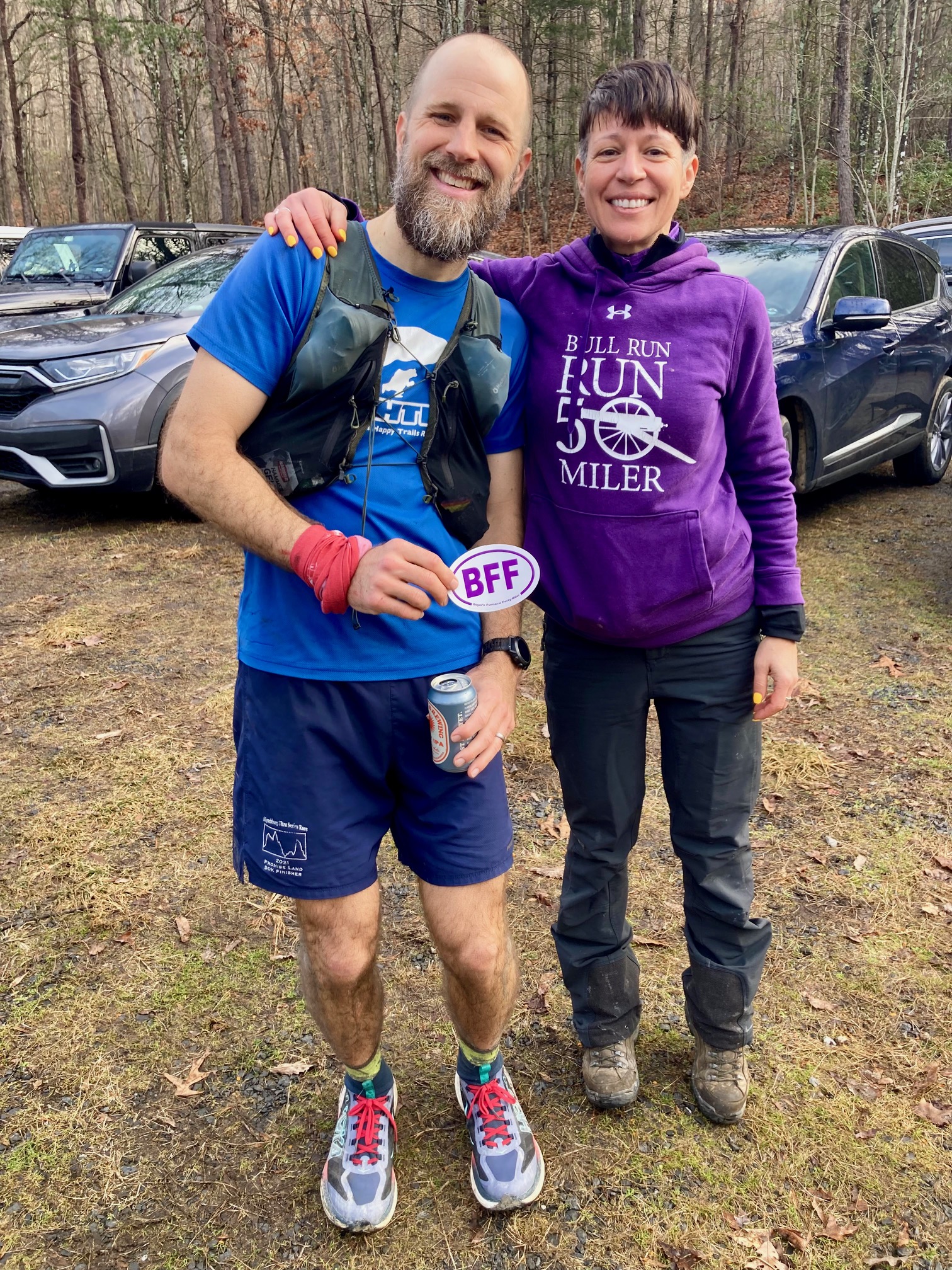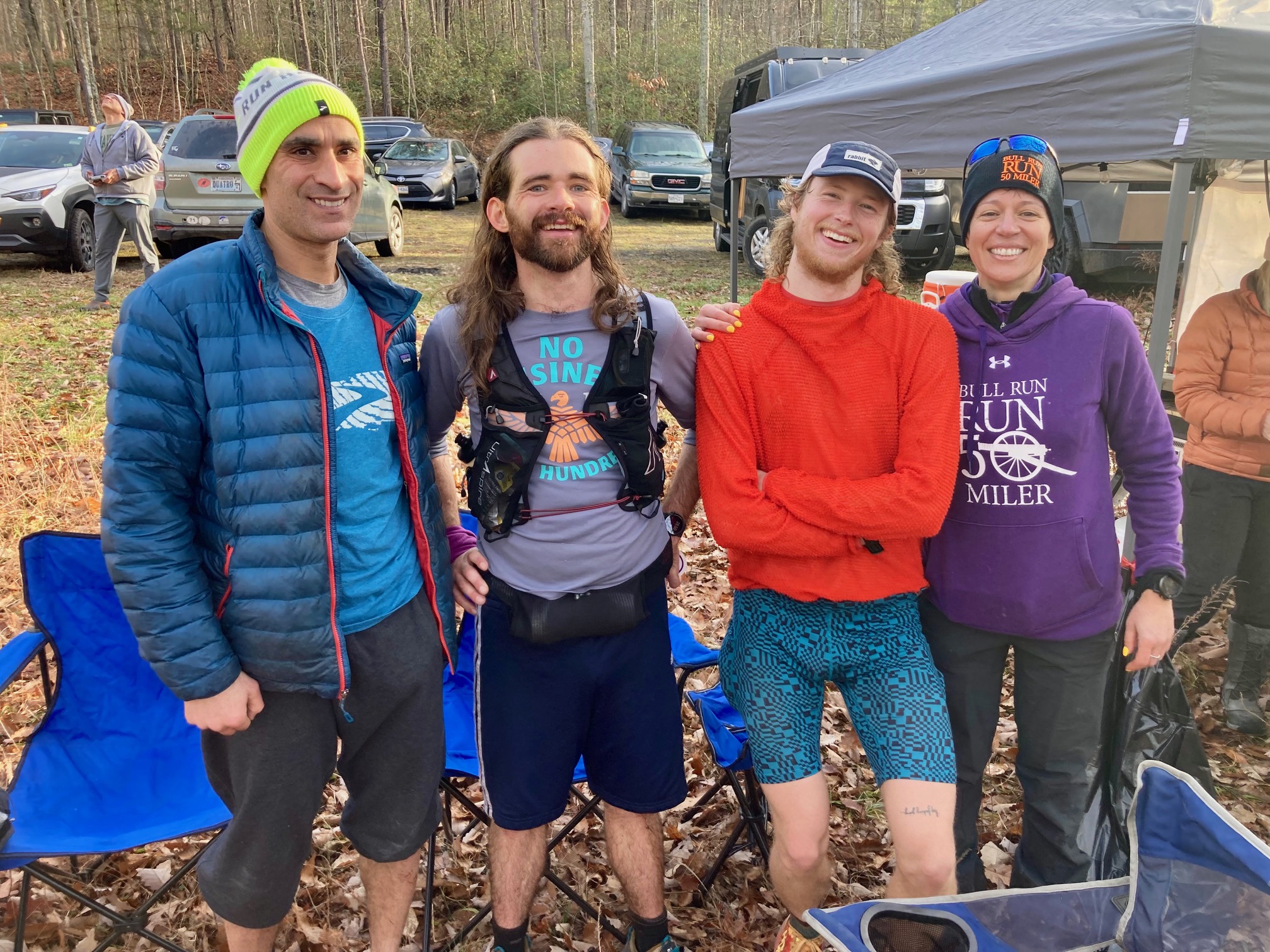 What an amazing day for an all-day party! We enjoyed starting line temps in the mid-40s, highs in the mid-50s, a bit of rain, and little more fog before the sunshine came out it in all its glory. BOTH the men’s and women’s course records were set, and there were loads of other blazing-fast times. We had at least a couple people (including Austin Williams and David McLaughlin) running their first ultra ever…woohoo! Others, including Jessie Wingo (see below), were attending their first VHTRC event ever.