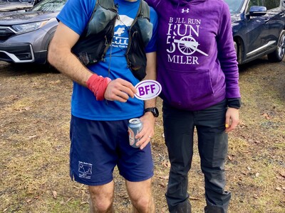 True story 2: Jesse Wingo showed up late for her first VHTRC event, having to park at the bottom of the hill after the lot filled up. After getting a bit of intel on the course, Q said, “you look fast. You should probably take off”. Take off she did. Despite starting a few minutes late, she broke the women’s course record by 3 minutes and finished with a gun time of 7:53. Sheila Martin dropped the hammer and dropped the boys in the last 9 miles, finishing second in 8:17. Lindsay Weaver, running with a friend the entire way, cruised into third place in 8:40.