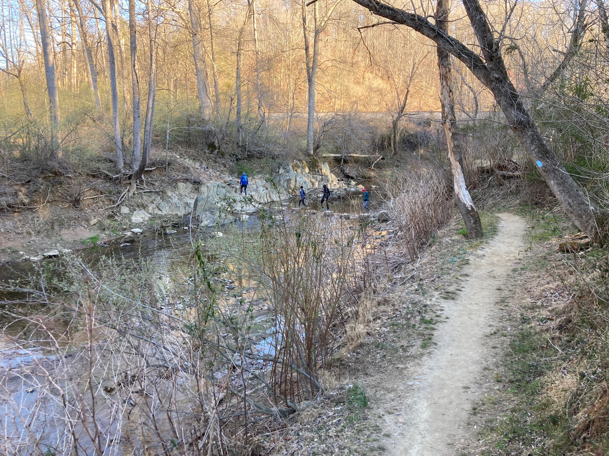 The main challenge on this day was staying on the right trail. There were a few hiccups along the way from Hemlock over Cub Run and into Bull Run Regional Park at the northern end of the course. But the primary confusion came in the Bluebell Loop. Event director Quatro Hubbard misspoke when asked at the pre-run brief and told the runners to run the loop clockwise, instead of the standard counter-clockwise. The CCW route allows the runners to enter the aid station at the Bull Run-Occoquan Trail (BROT) trailhead, and then run about a 1/3 of a mile to the trailhead for the Bluebell Loop. It all came out in the wash, however, since just about everyone made it to the aid station, and then completed the loop in the direction of their choice.