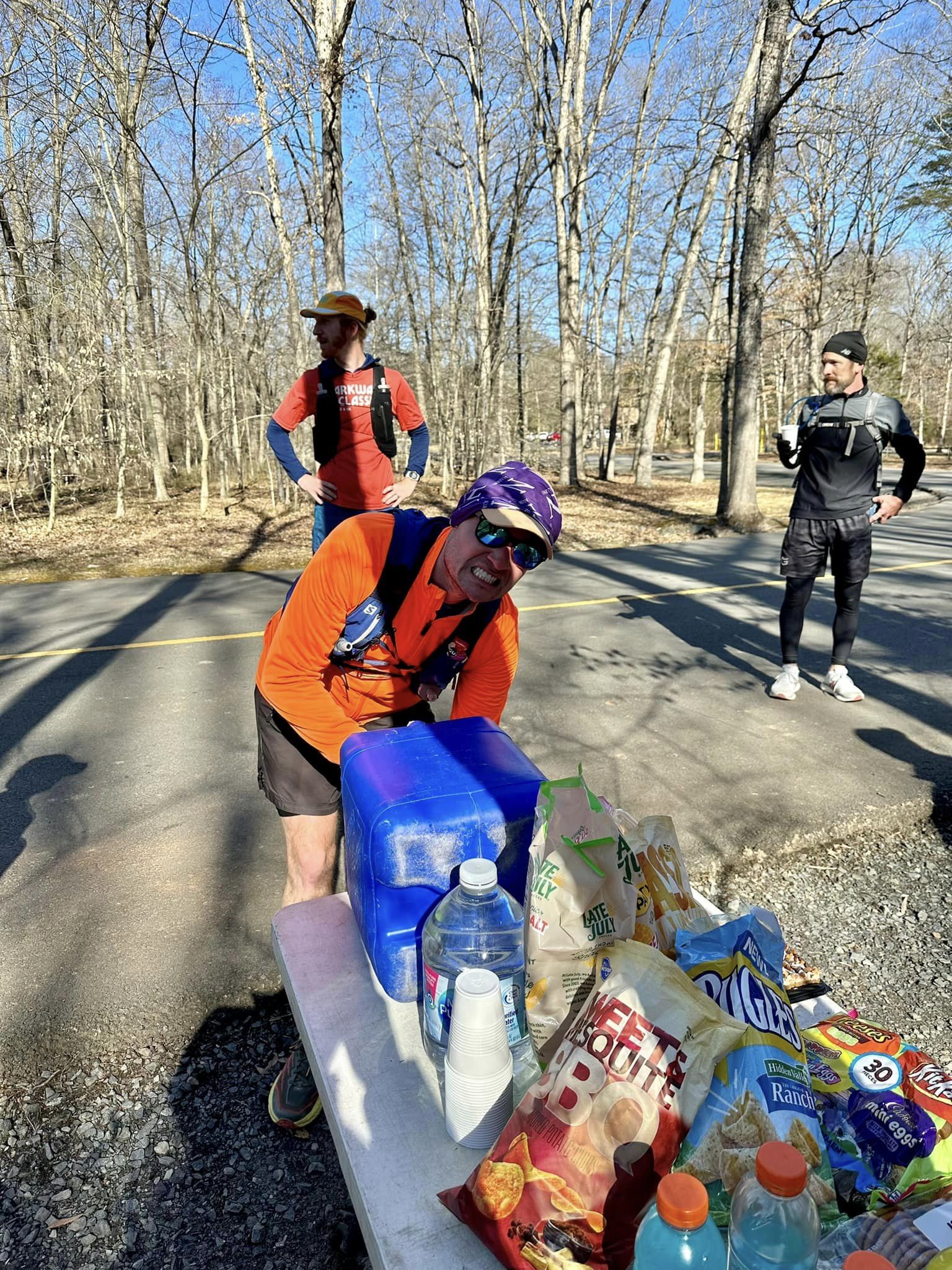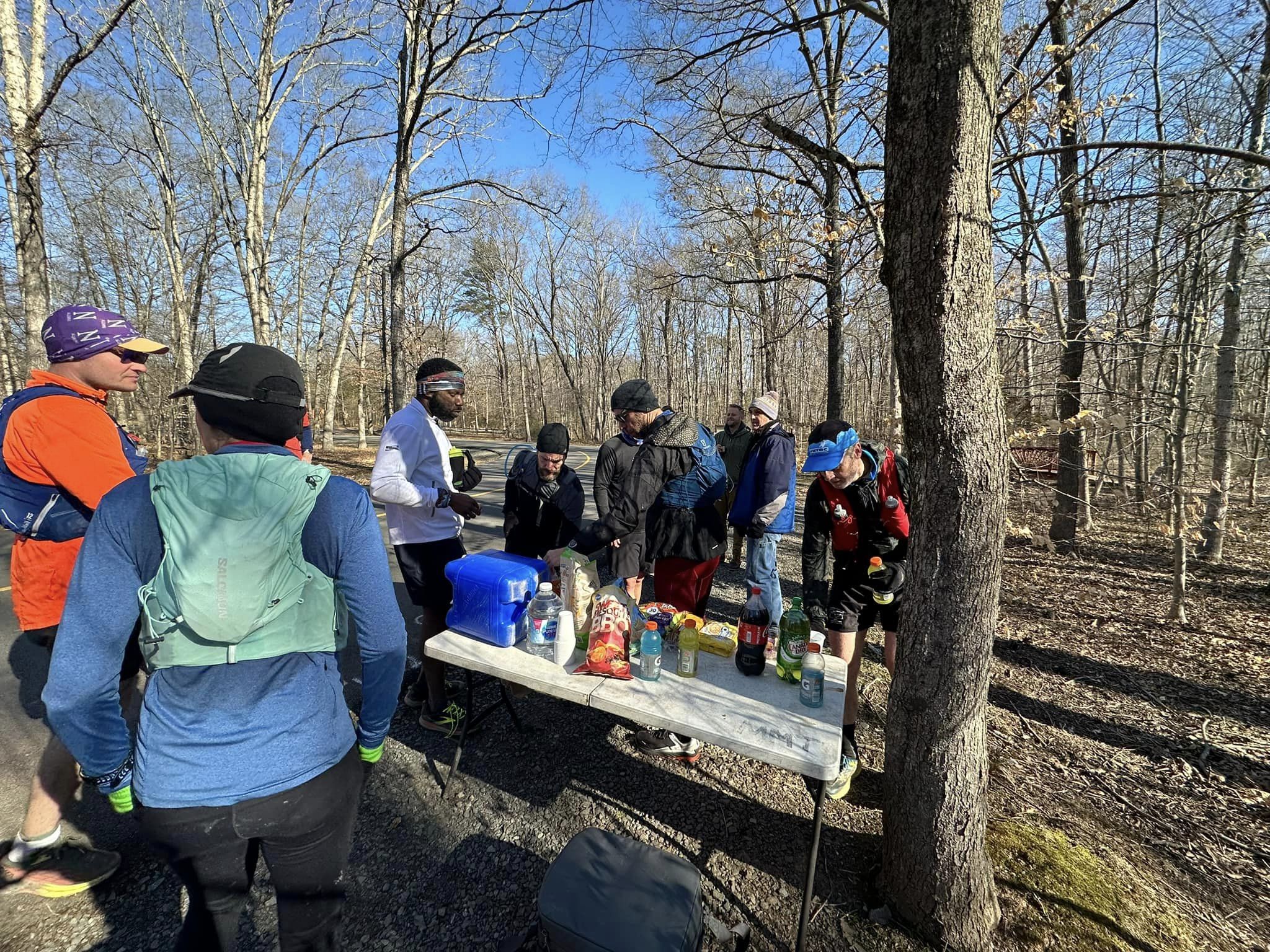 Thank to Lou for the bulk of the photos below (those of the aid station, and then shots of the trails itself). Quatro took the handful of photos of the runners early in the training run as they approached or crossed Popeshead Creek.