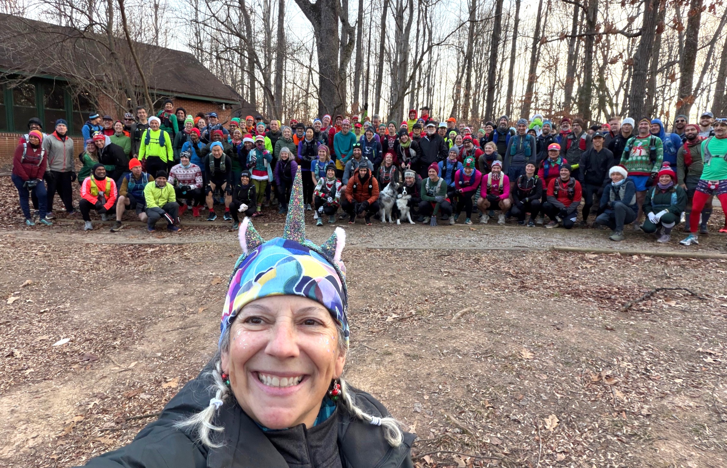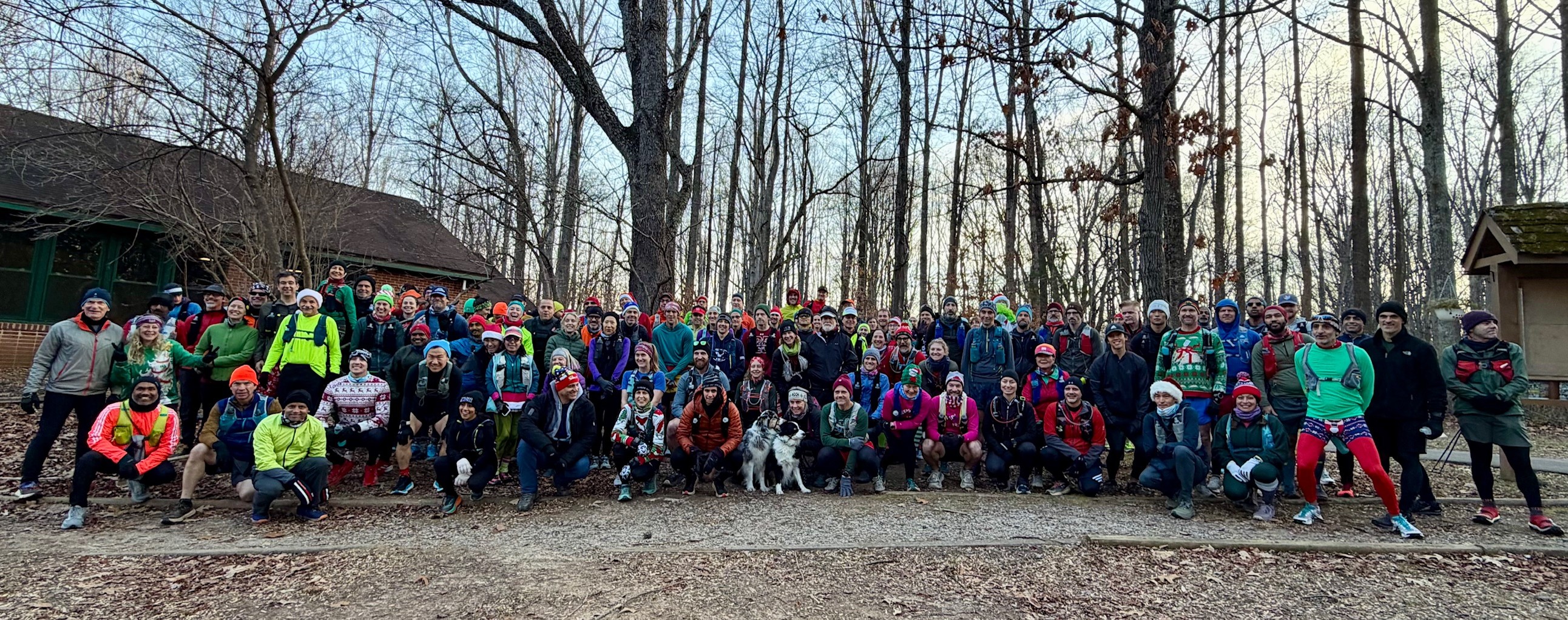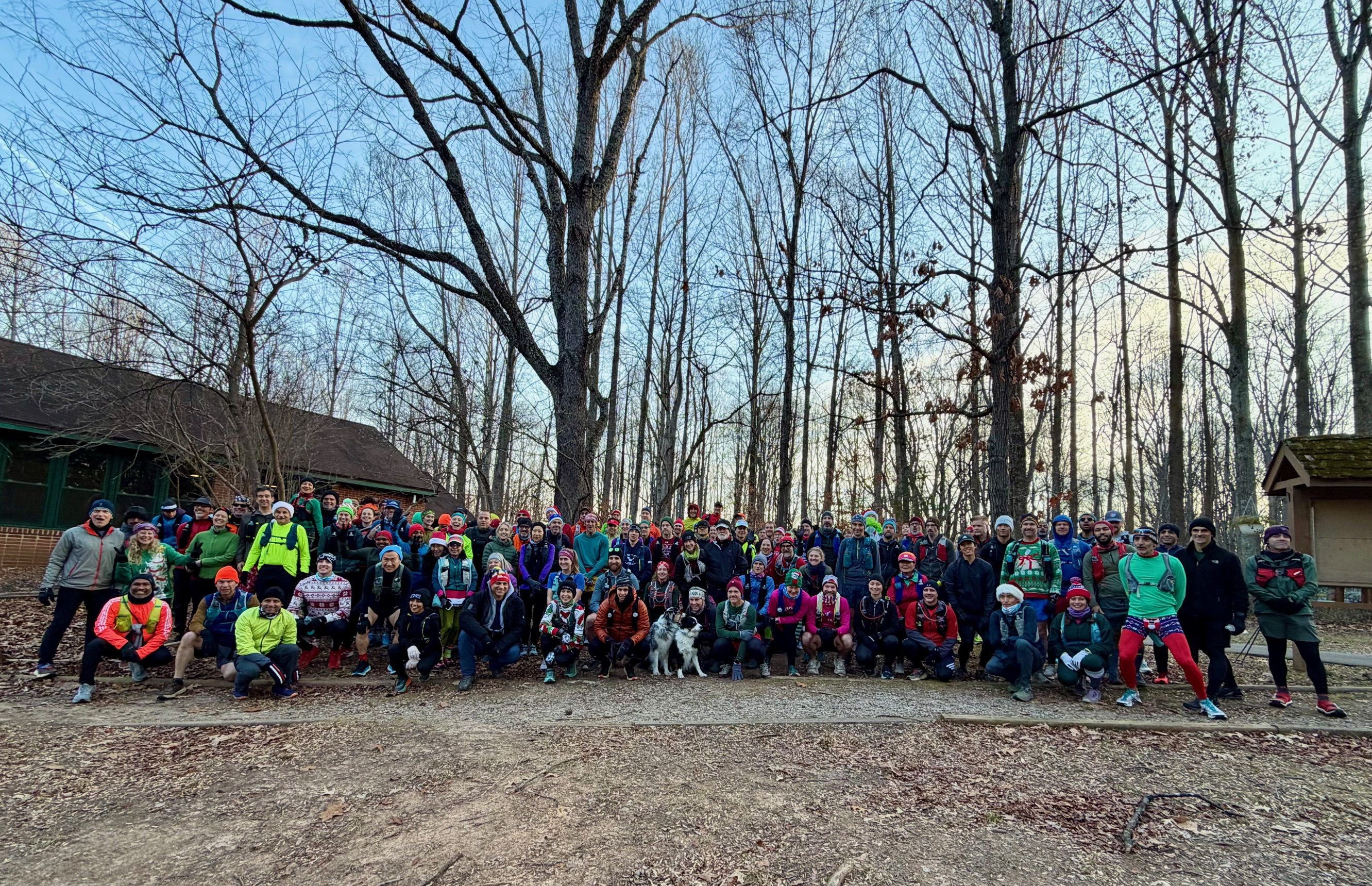 The 33rd running of the Magnus Gluteus Maximus 50k was another fabulous Virginia Happy Trails Running Club event on December 13, 2025! A seasonally winter’s day, with temps starting in the mid 20’s, but rising to the low 40’s, with abundant sunshine, dry trail conditions and very little wind made for a perfect day on this classic course. One hundred thirty four trail runners spent the day running with friends in the woods and sharing time with each other, just as the MGM founder, Joe Clapper would have wanted!