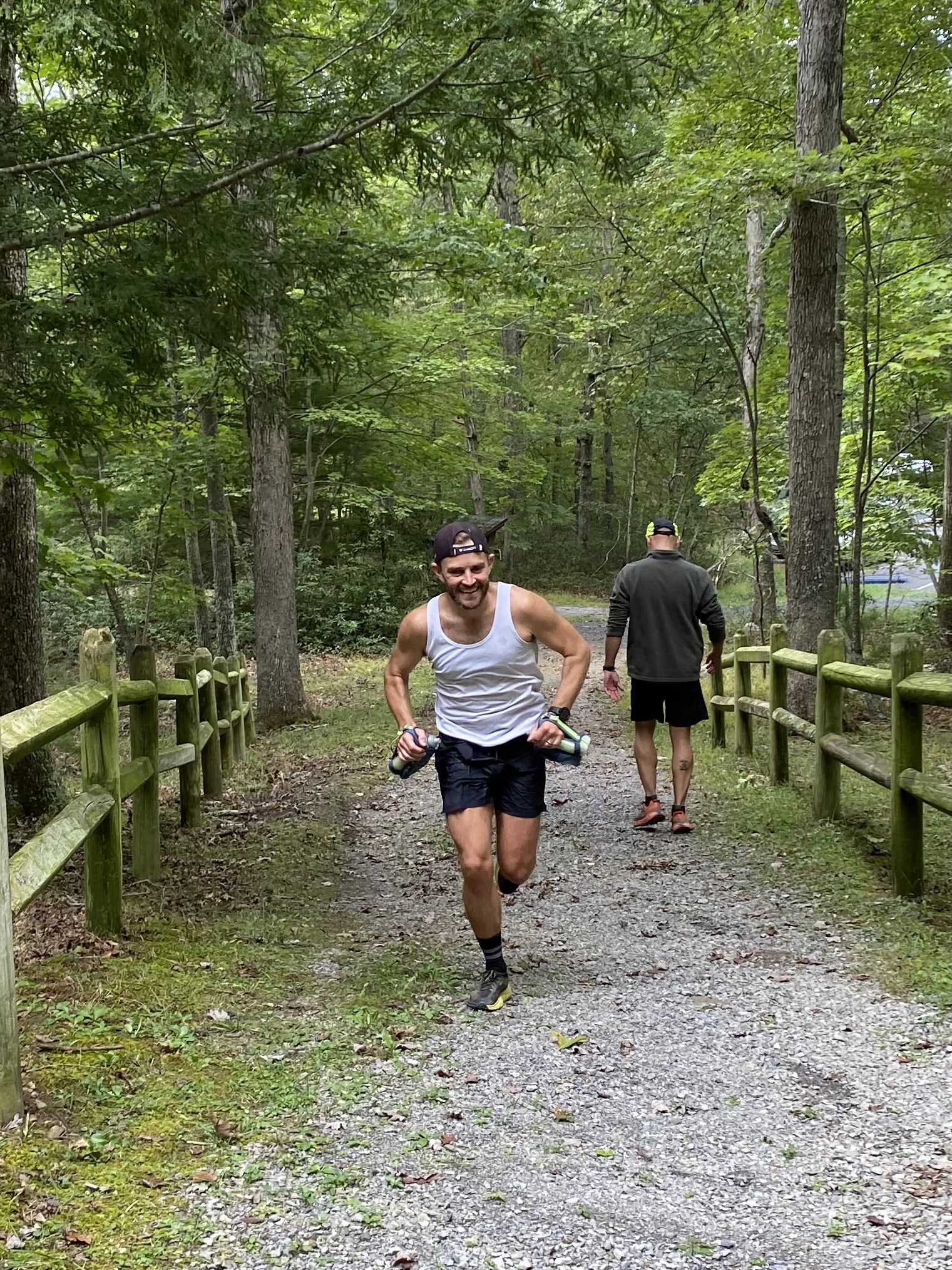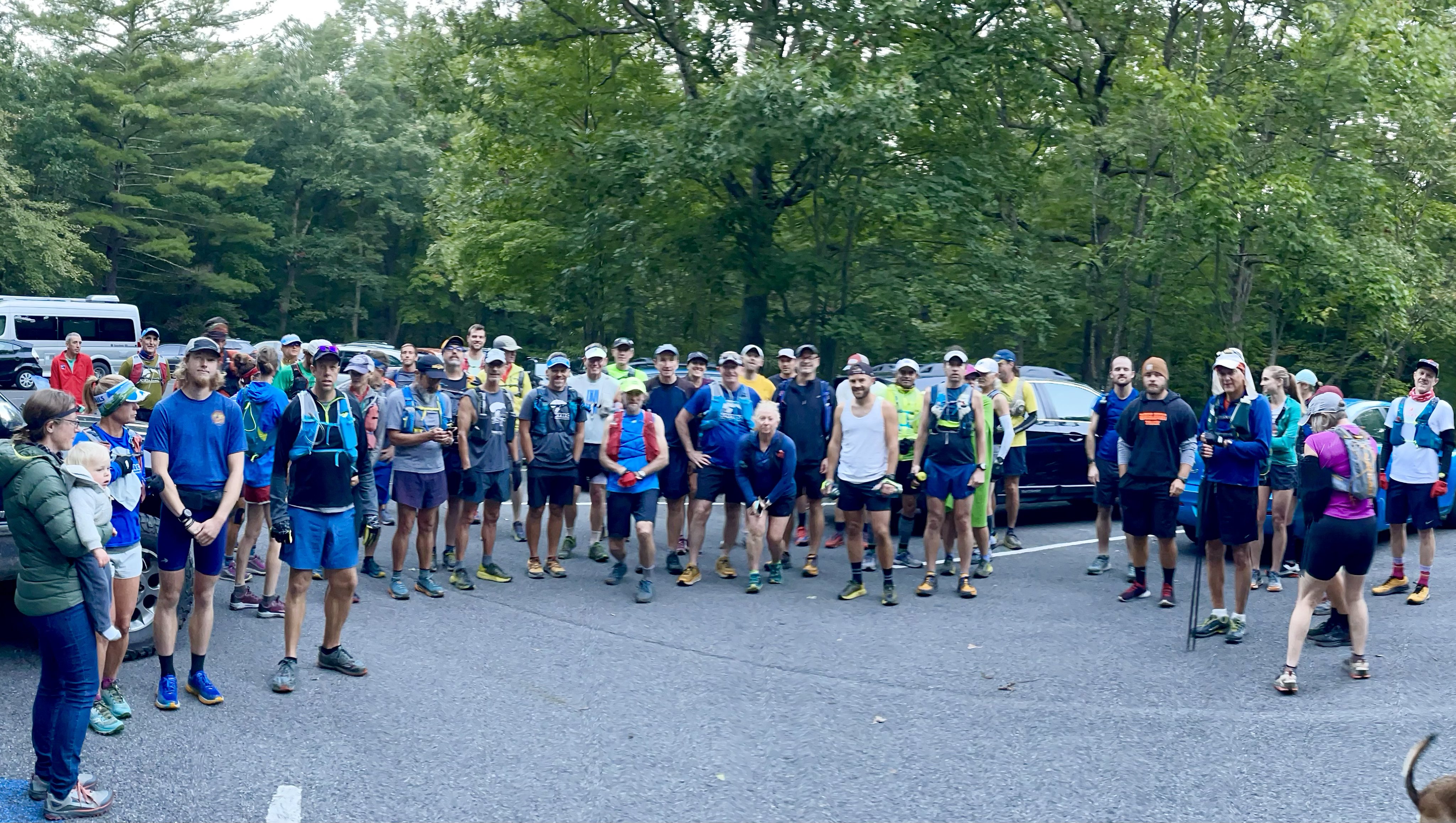 Thanks to the beautiful race day weather, as well as the opportunity to again socialize after a year of near-isolation, many of the runners and volunteers stuck around for the cookout at the finish line picnic pavilion, as well as camping at Trout Pond. Thank you to Dan Aghdam and Wendy Valdes for manning the grill and food table! Dan’s Meats cannot be beat! Thank you also to Quatro Hubbard for the general support and help with procuring supplies. We are extremely grateful to the wonderful course markers, aid station volunteers, and sweepers as well as the runners for taking a chance on brand new race directors (toting a toddler around the course, no less!). This would not have gone so smoothly without the copious notes, advice and documents handed down from previous race director Kirstin Corris. And last, but by no means least, a huge thank you to the support of the Virginia Happy Trails Running Club for the backing that allows this race to take place, and to MMT 100 race director Kevin Sayers in particular for allowing us to borrow MMT gear for the aid stations at the Big Schloss.
