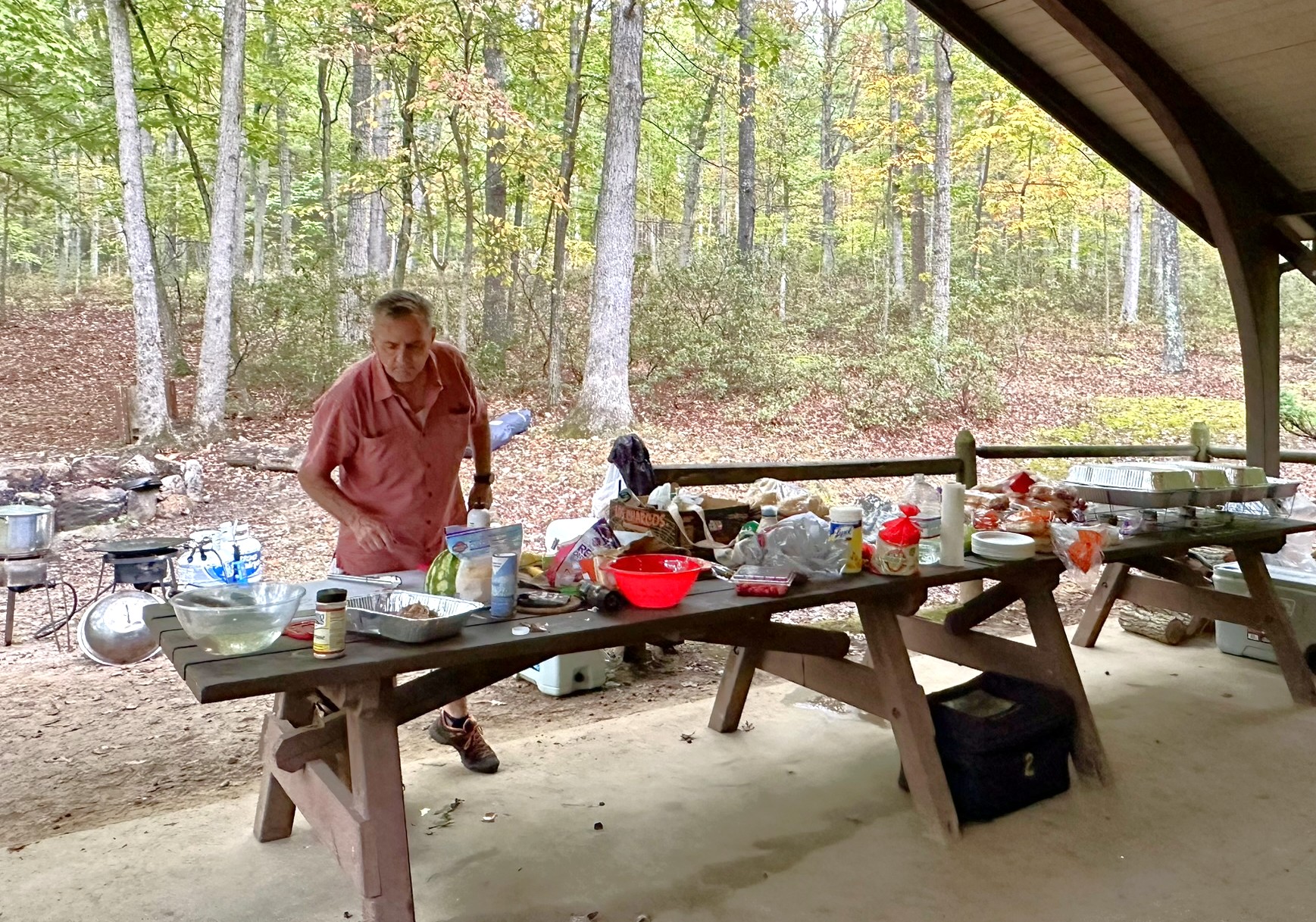 The day wasn’t without its drama, as earlier in the day Quatro discovered that his carefully placed ribbons up to Tibbet Knob had been taken down at some point since course marking on Friday. A quick drive up to Judge Rye Rd confirmed the ribbons directing runners down the road were still in place, so volunteer Homer Komthirath reflagged the trail section from the top of the climb down to Wolf Gap just as the first runners were making their way up. While no one was lost on that section, another case of possible ribbon tampering in the final mile of the course led runner Mathew Francis to miss the left turn over the creek on the Chimney Rock Trail and instead carry on down to the store on Thorn Bottom. Once he realized his mistake, he took the road back to the campground for three bonus miles. Normally this would be grounds for a DNF but given that he self-extracted on his own two feet, I decided to give him the finish.