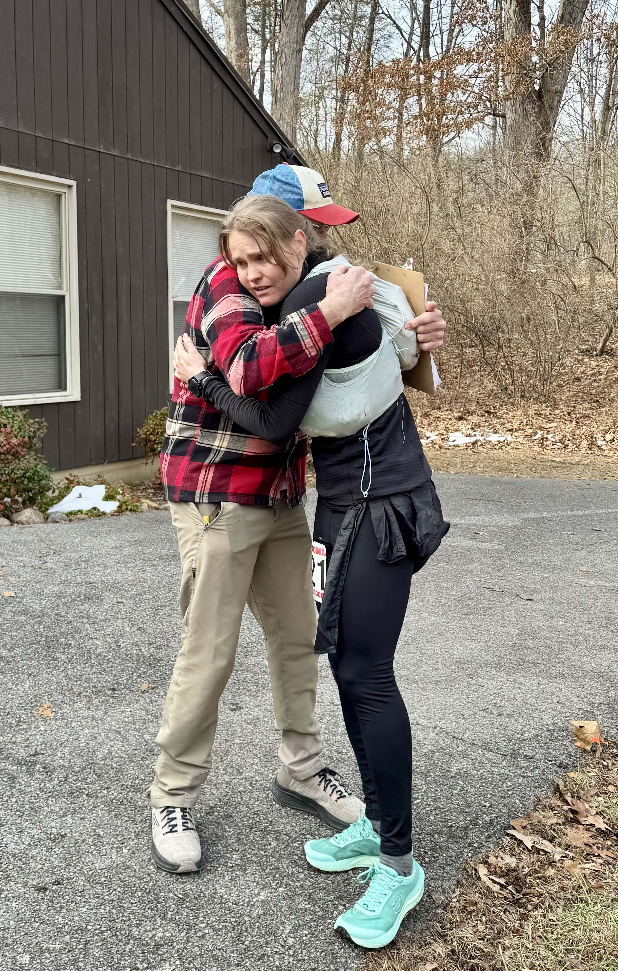 This year the Hellgate aid stations had to be moved because of the snowy and icy conditions. Horton announced that runners would not see their crews until mile 30, at Jenkins Gap. We made it work! At mile 30, I ran into the aid with torched legs from the first section’s snowy climbs, which felt like running in quick sand. Ivory kept me level-headed, provided me with water and fuel, and sent me on my way, ready to race!
